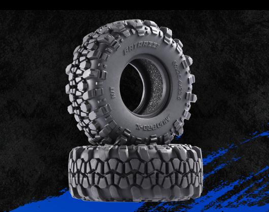 Designed for 1/24 and 1/18 RC cars, these wide, all-terrain tires are made with a soft compound and high butyl rubber content. They provide great grip and performance, with detailed tread and excellent crawling ability.