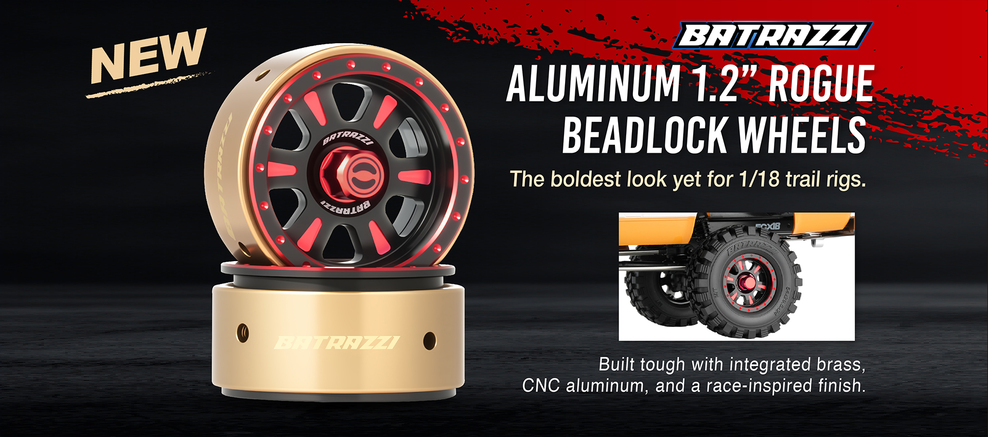 Available in black and gun metal, the beadlock steelies add a cool scale look and improve the center of gravity of your 1/18 and 1/24 RC cars.
