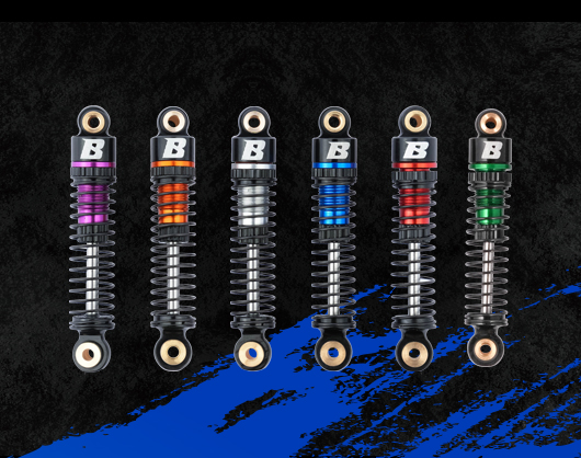 Available in green, orange, purple, silver, blue, and red, these shocks are designed for 1/24 and 1/18 RC cars, provide durability and easy tuning with adjustable pistons, springs, and travel.