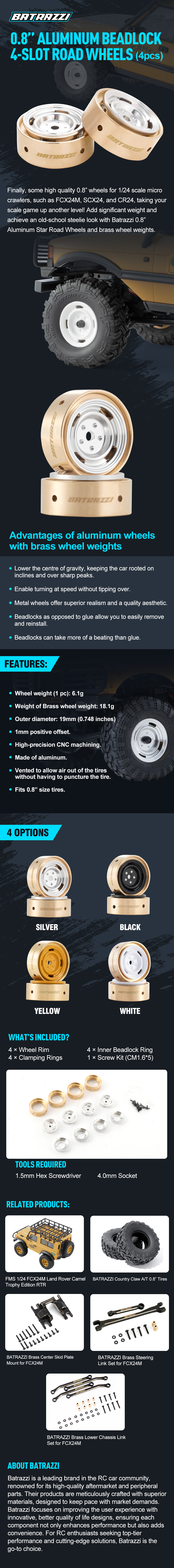 Batrazzi 0.8” Aluminum beadlock 4-Slot Road Wheels (4pcs)
