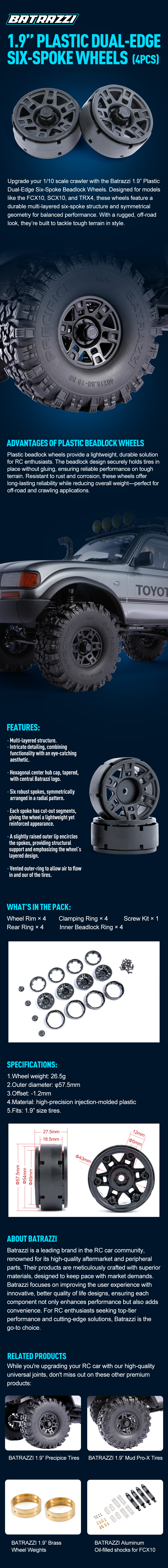 Batrazzi 1.9” Plastic Dual-Edge Six-Spoke Wheels (4pcs)