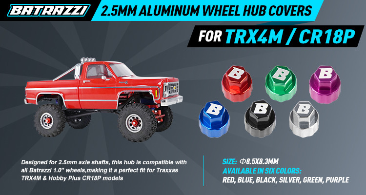 Designed for 2.5mm axle shafts, this hub is compatible with all Batrazzi 1.0" wheels, making it a perfect fit for Traxxas TRX4M & Hobby Plus CR18P models, offering enhanced performance.