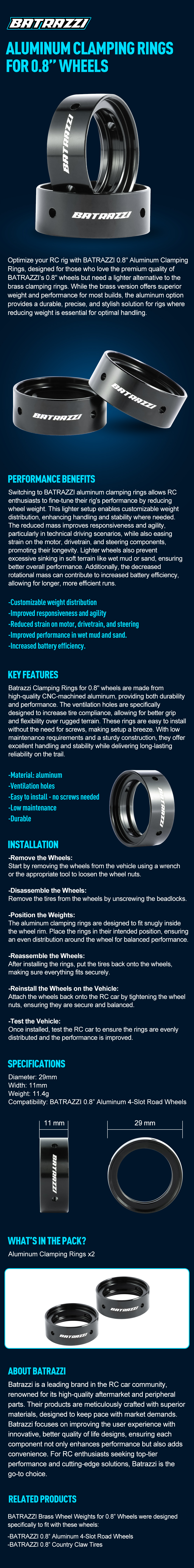 BATRAZZI Aluminum Clamping Rings for 0.8” Wheels (2pcs)