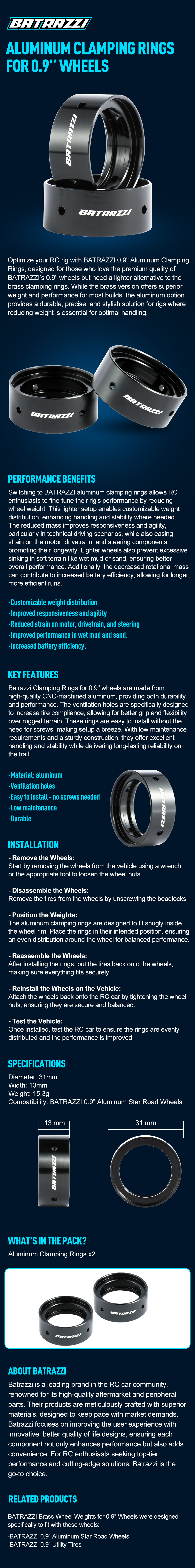 BATRAZZI Aluminum Clamping Rings for 0.9” Wheels (2pcs)