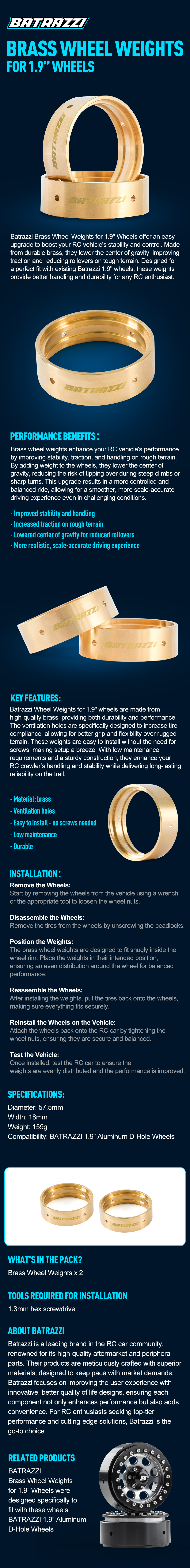 BATRAZZI Brass Wheel Weights for 1.9” Wheels (2pcs)