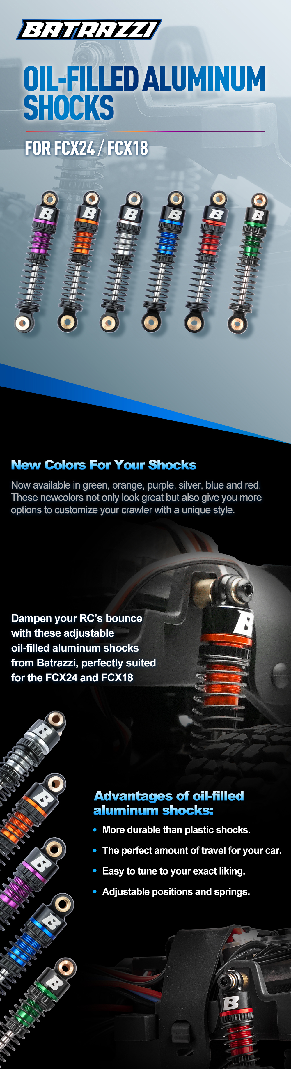 BATRAZZI 41mm Oil-filled Aluminum Shocks for FCX24 / FCX18 Orange (4 pcs)