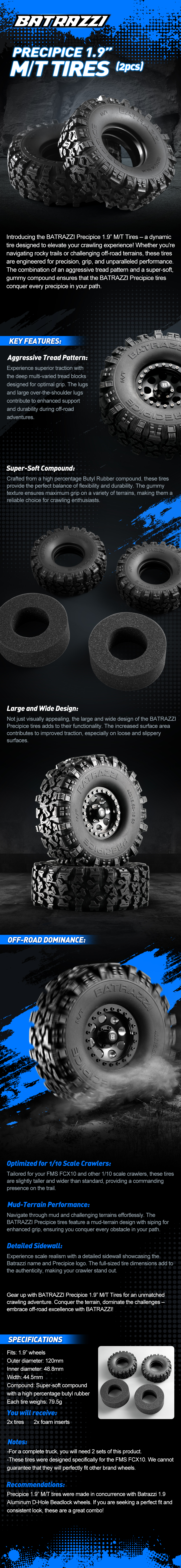 BATRAZZI 120*44.5mm Precipice 1.9" M/T Tires (2pcs)